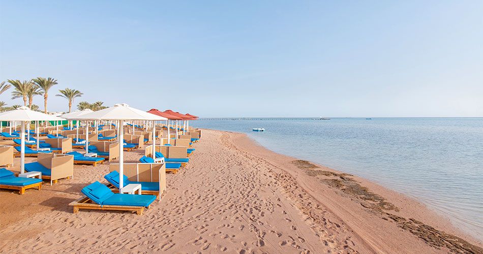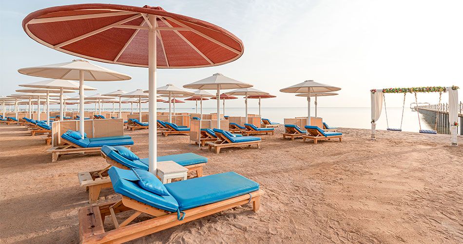 Pláž Pláž u sesterského hotelu Pickalbatros Albatros Laguna Beach 5* Cesta je přes areál hotelu Vstup do moře velmi pozvolný, místy přes korálové podloží Molo Bar, sprchy a WC Lehátka a slunečníky zdarma, plážové osušky zdarma