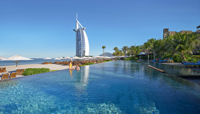 - Sheraton Jumeirah Beach Resort – luxusní hotel u moře, prestižní čtvrť Jumeirah Beach Residence